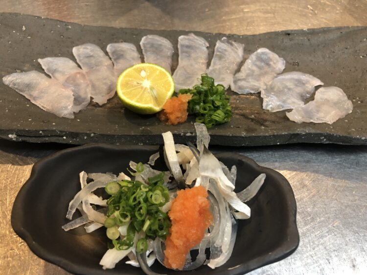 菜の花からしあえ、たら白子醤油焼き、カキ天ぷら、てっちり、てっさ、たら白子ぽん酢…